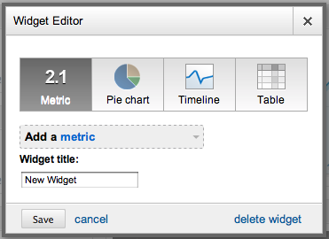 For most Google Analytics users, the dashboard is the first thing you see when viewing your reports. Dashboards in the new version of Google Analytics have been redesigned to be completely widget-based and highly customizable. There are four types of widgets: Metric, Pie Chart, Timeline, and Table. This gives you the ability to choose the visualization that best suits the data you want in your dashboard. The Dashboard uses a three-column layout, and you can customize the layout by dragging and dropping the widgets as you’d like.