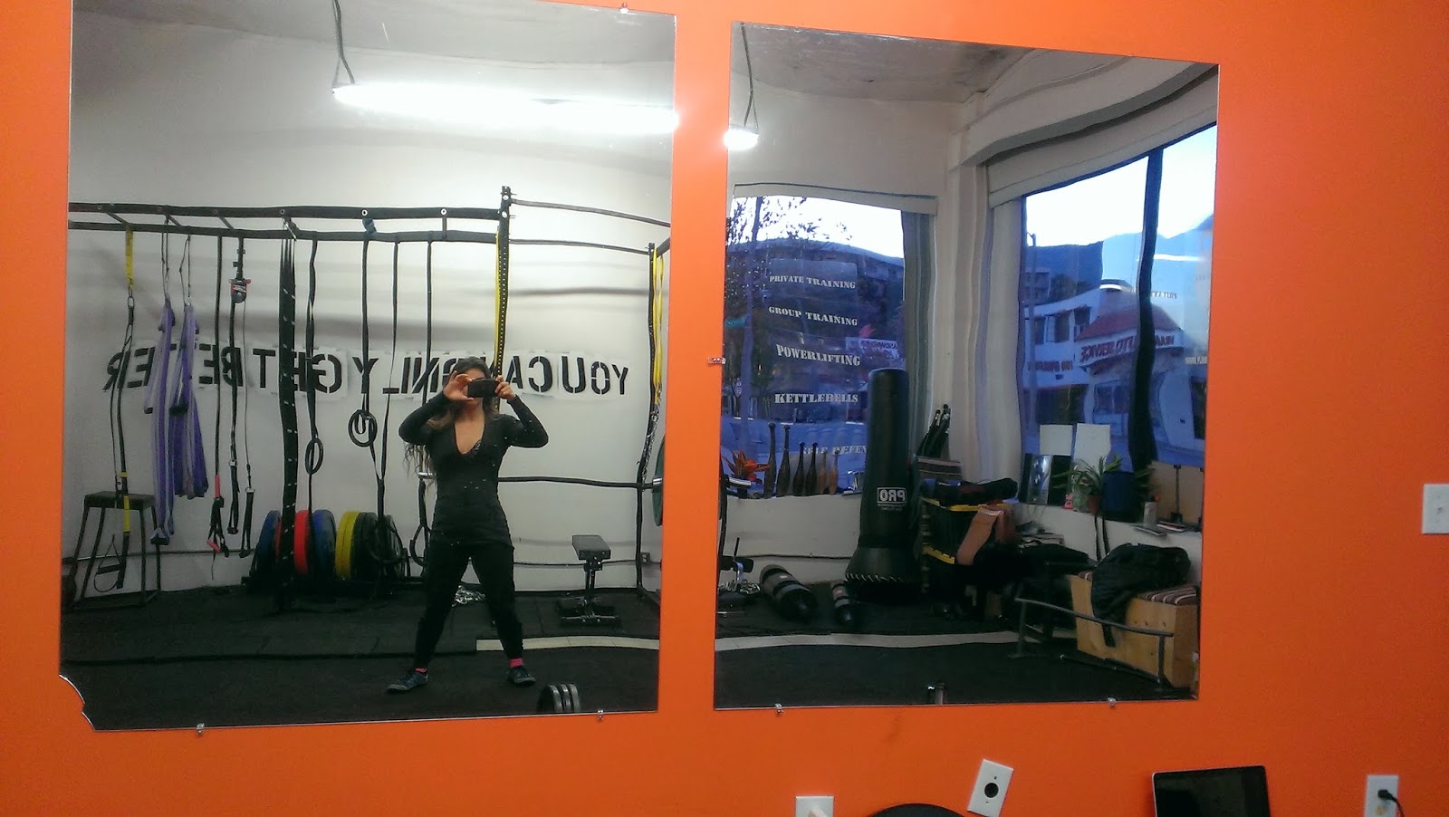 When I opened my studio in September, I bought some acrylic mirrors online. When they showed up, they were much thinner than I'd realized, and they warped when I put them up. People complained about them. But I decided to keep them, because what they do is make people aware of their form in their lifts without focusing on their insecurities about their bodies. And now my clients seem to like my funhouse mirrors. "If I stand over here, my right leg looks huge! *giggle*"